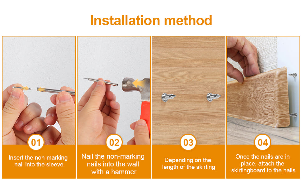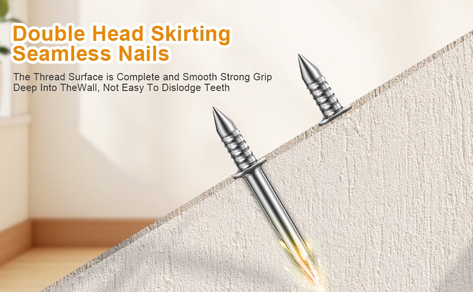 ✔️Invisible Seamless Finish – Double-headed design hides nails completely within skirting joints, eliminating visible holes for a professional, flawless look.