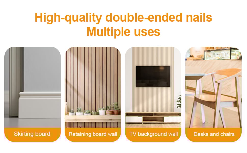 ✔️Widely Used - The practical nails have wide applications, which are not limited to secure baseboards and panel wall, they can also be use to hang photos to crafting, general maintenance tasks, etc.